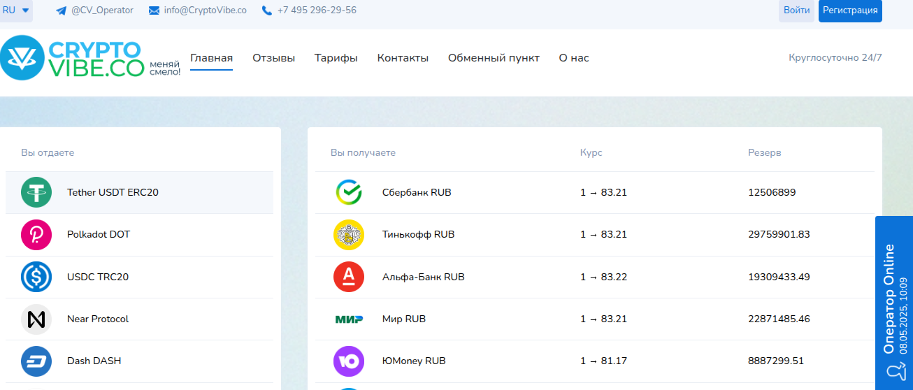 Crypto Vibe — криптовалютный обменник, предлагающий услуги обмена цифровых активов. Мы изучили деятельность этого сервиса, юридическую информацию, проанализировали отзывы о «Криптовайб» и выявили следующие риски: