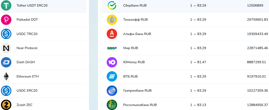 Платформа предлагает обмен более 20 видов криптовалют. Среди основных преимуществ обменника, авторы проекта выделяют выгодные курсы, быстрый обмен и безопасность. Но это лишь размытые, ничем не подтвержденные фразы.