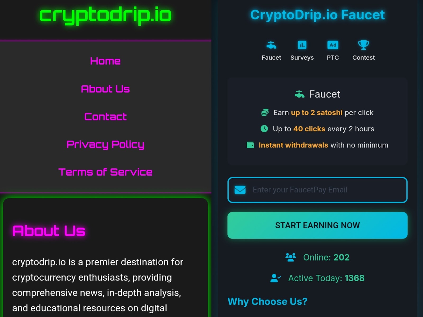 У проекта есть сайт cryptodrip io faucet, который предоставлен на английском языке. Из категорий доступны: “Главная”, “О Нас”, “Контакты” и прочие. Стоит отметить, что во многих браузерах ресурс не открывается, а также площадка не работает при использовании ВПН.