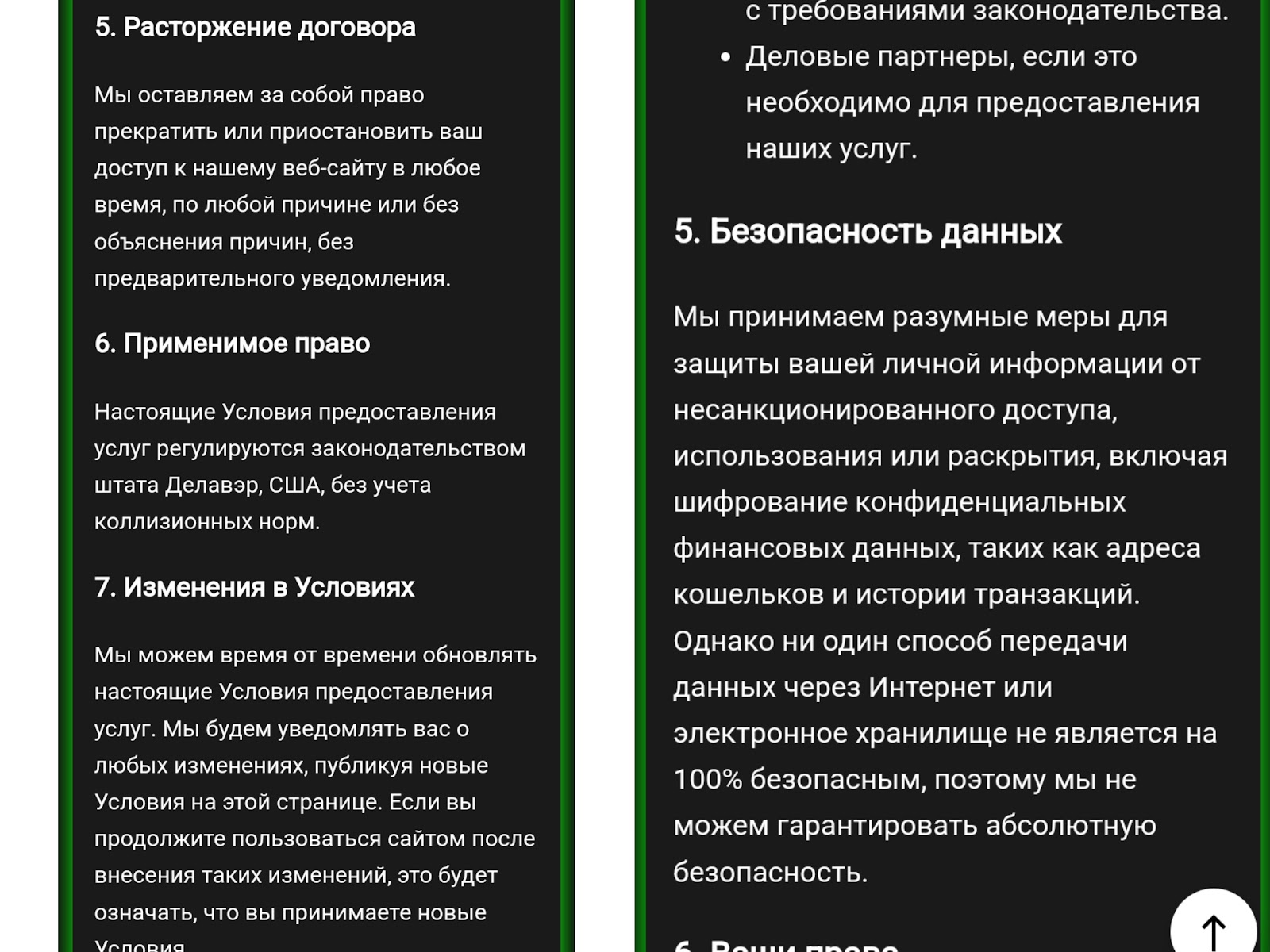 Исходя из условий, размещенных на веб-ресурсе privacy cryptodrip io, администрация может вносить изменения в правилах. Также сервис имеет право прекратить доступ к сайту без какого-либо уведомления клиента.