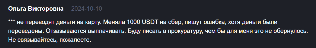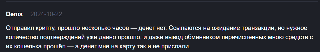 Реальные же пользователи оставляют негативные отзывы о Крипто Хаб. Жалуются, что деньги не приходят на указанные реквизиты, представители обменника даже не пытаются помочь. Есть те, которые потеряли 1000 USDT с Cryptohub.