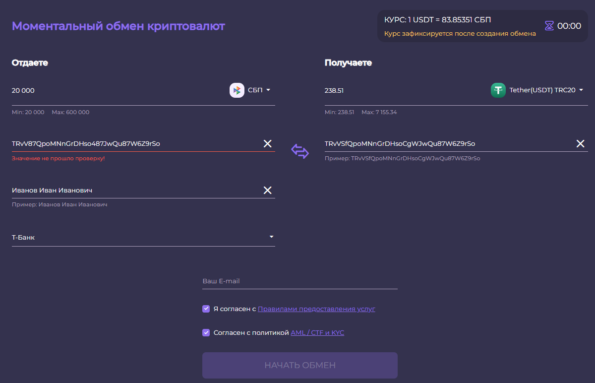 На официальном сайте указано, что обменник существует с 2024 года, но в ходе проверки оказалось, что веб-ресурс был создан 9 декабря 2021 года. Домены часто выставляют на перепродажу, поэтому их могут использовать для продвижения разных проектов в разное время.