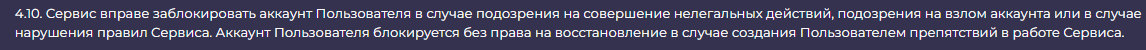- по договору сервис имеет право отказать в обслуживании без возврата средств;