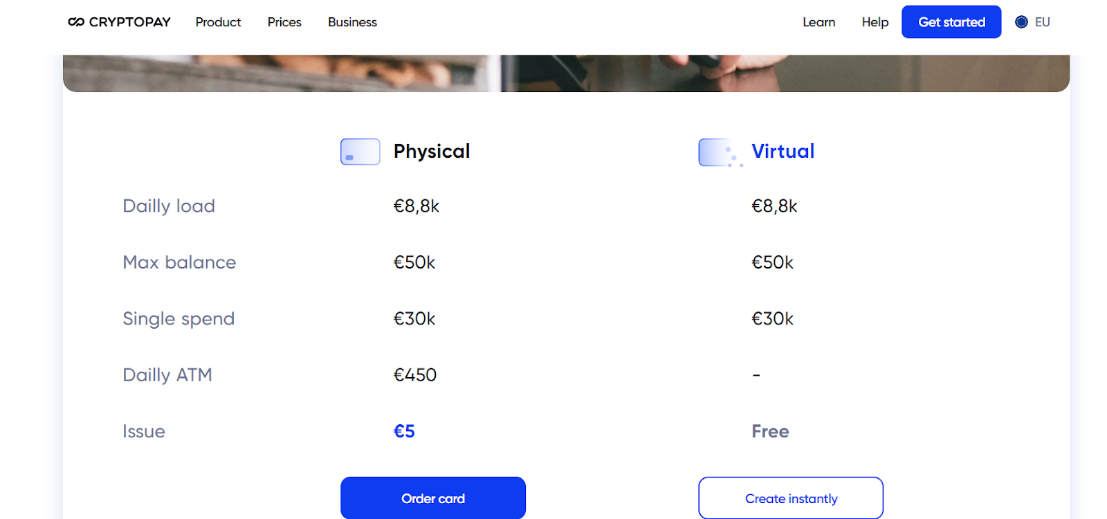 - Физическая. Можно заказать за 5 евро. Ежедневно можно производить транзакций до 8.8 тыс. евро. Максим. баланс 50 тыс. евро. Ежедневный ATM 450 евро;
