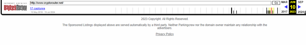 Информация о двухлетней истории проекта не соответствует действительности. Архиватор содержит снимок, как выглядела страница «Крипто Рите» 10 июня 2023 года. Вместо обменника Cryptorouter там расположена лендинговая страница с рекламой.