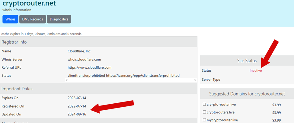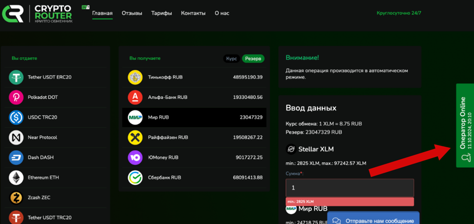На 6 ноября 2024 года сайт Cryptorouter net недоступен. Последняя известная дата, когда обменник оказывал профильные услуги – 11 октября 2024 года.