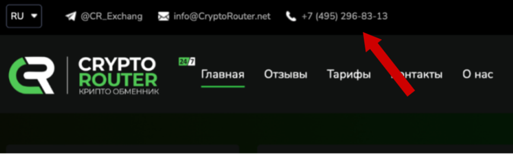 Телефон +74952968313, опубликованный на Crypto Router Net, как контактный – отключен. Таким образом, клиенты обменника не могут связаться с техподдержкой.