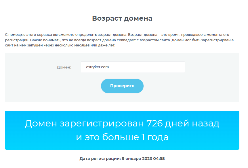 Эти сведения не соответствуют действительности. Мы проверили возраст домена. Выяснилось, что домен был зарегистрирован 9 января 2023 года.