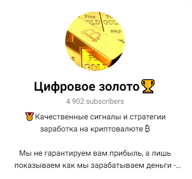 Канал “Цифровое золото” — сообщество, “заточенное” для инвесторов и трейдеров, зарабатывающих на криптовалюте. Автор делится опытом торговли, предоставляет прогнозы и торговые сигналы, выдает актуальные новости и размещает обзоры. Зарабатывает на привлечении в приватную группу, в которой вытягивает деньги с клиентов, раскручивает других аферистов. Ниже рассмотрим, в чем особенности сотрудничества и стоит ли доверять трейдеру.