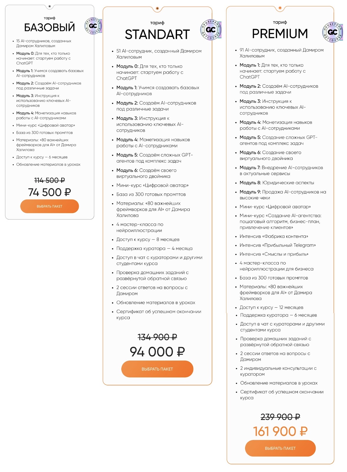 Курс состоит из 10 модулей, включая нулевой. В них раскрывают полный диапазон вопросов, посвященных основной теме и юридическим аспектам деятельности. Стоимость всего этого великолепия зависит от выбранного тарифа.