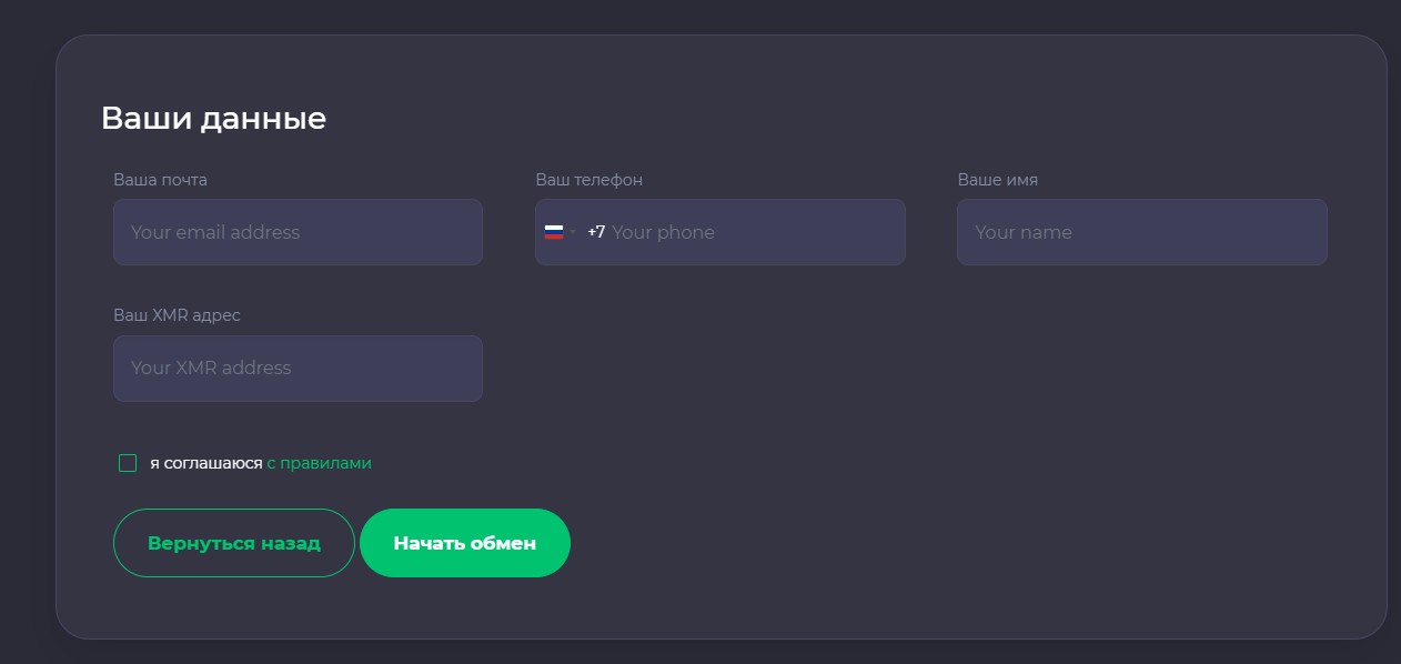 Платформа разработана так, чтобы сделать процесс обмена интуитивно понятным – разберется даже школьник. На главной странице размещена форма заявки, в которой пользователь: