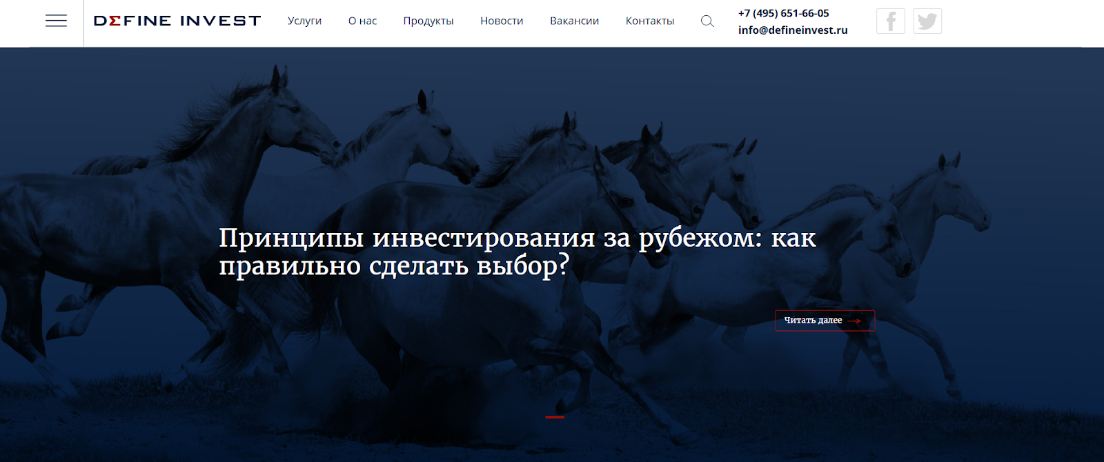 Define Invest — инвестиционная компания, которая работает с клиентами из России и других стран. Проект обещает своим клиентам высокую прибыль на доверительном ведении счета.