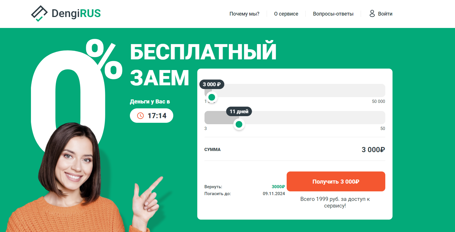 Деньги Рус Ру — мошенники, которые представляются посредниками между заемщиками и кредитными организациями. В реальности такие компании не имеют смысла, так как заявки в МФО заполняются за минуту, проверка кредитной истории проводится ими самостоятельно. Обращение в Деньгирус, напротив, лишь затягивает время принятия решения и лишает клиента еще пары тысяч рублей. Признаки развода на сайте: