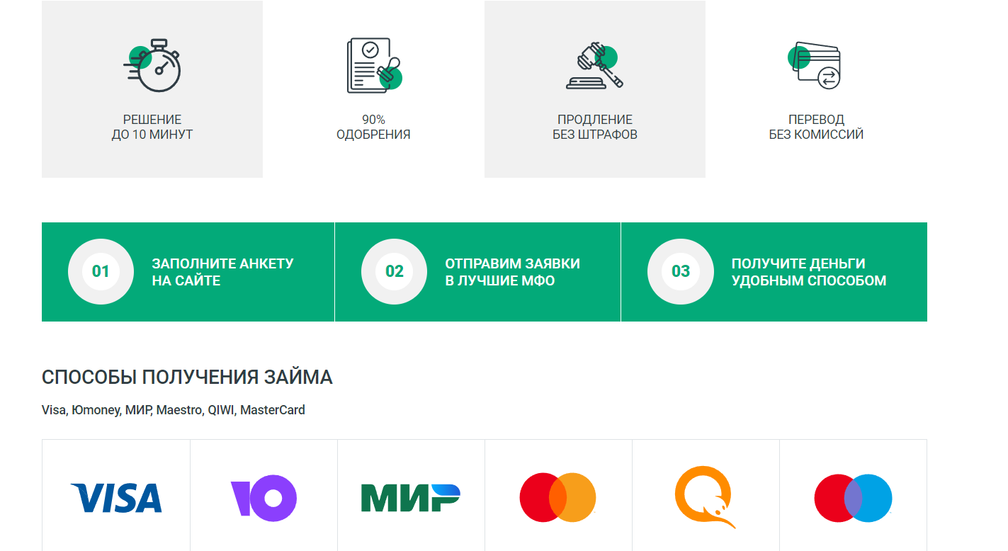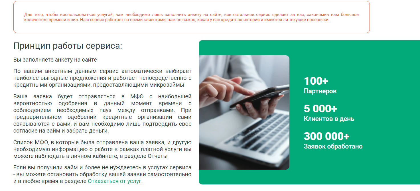 - нет никаких гарантий, что сервис отправит заявку в МФО, а не пришлет дежурный отказ;