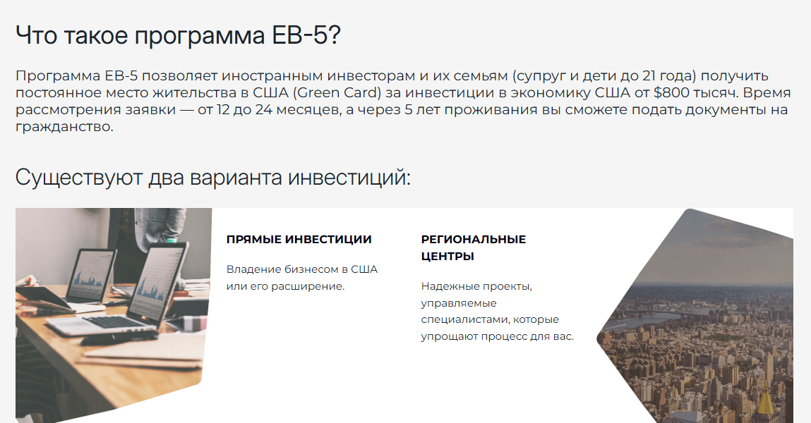 - государственная миграционная программа была запущена Конгрессом в 1990 году, цель проекта – стимулировать американскую экономику за счет иностранных инвесторов;