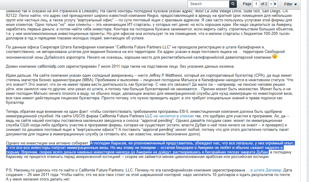- инвесторы программы EB-5, которые успешно воспользовались услугами Дениса Карасева, в сети отклики не оставляют;
