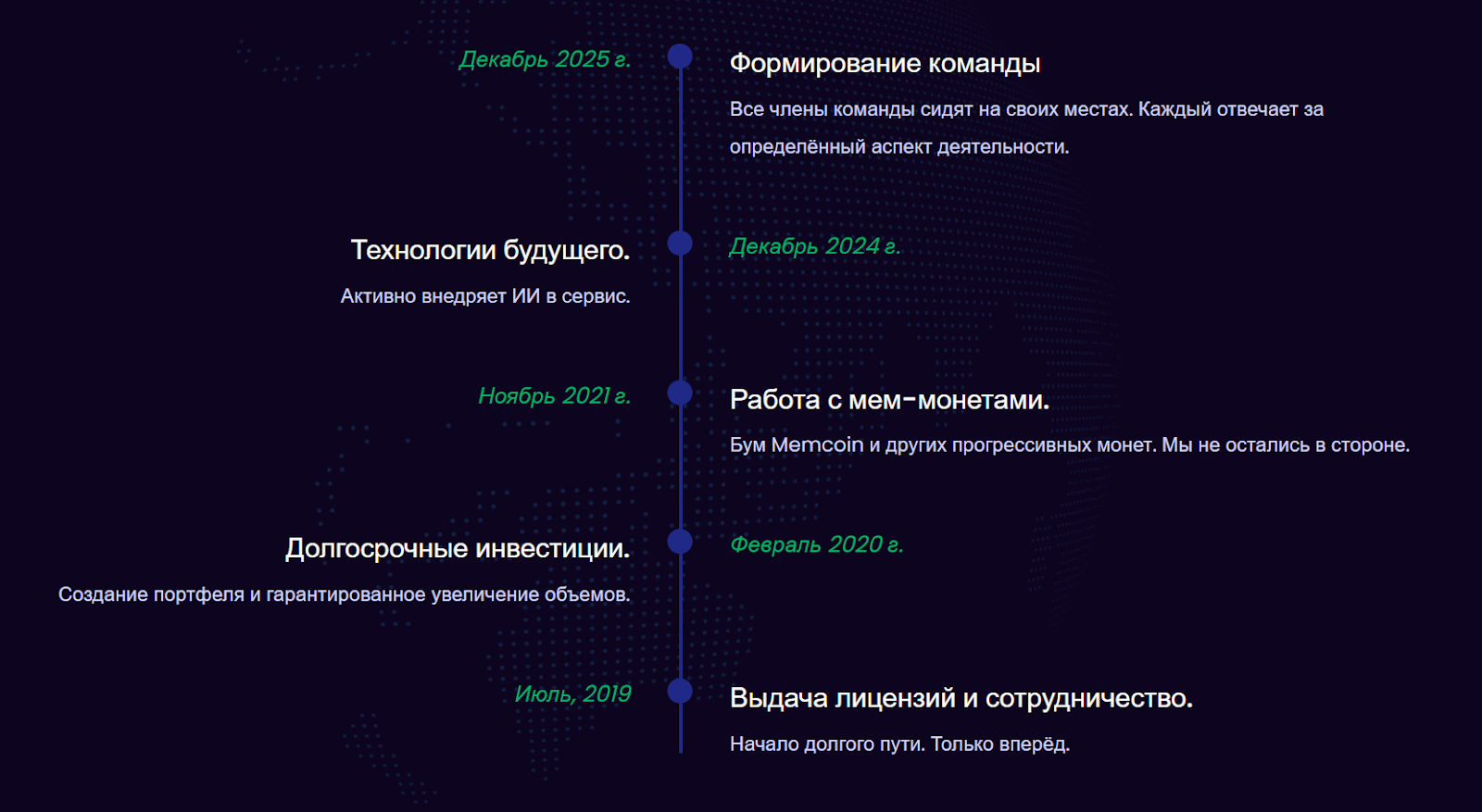 В декабре 2024-го разработчики стали активно внедрять технологии ИИ в платформу. Также была создана команда, которая занимается развитием проекта. В качестве клиентов заявляется Bybit, Blockchain и другие платформы. При этом какие-либо подтверждения данного факта не приводятся.