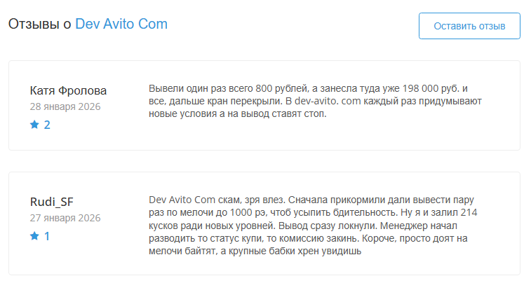 Признаки того, что Dev Avito Com — это развод