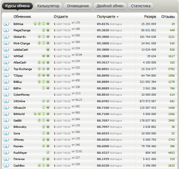 Поисковик не является сервисом для обмена и нужен лишь для получения информации. Поэтому мы решили убедиться в несоответствии курсов, сравнив его котировками с конкурентами обменника в рамках сервисов для мониторинга.