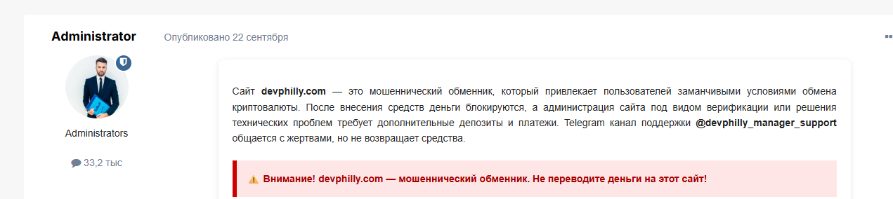 Отзывы об обменнике DevPhilly com удалось найти на одном из форумов, где проект обвиняют в мошенничестве.