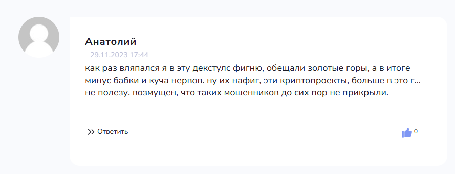 В комментариях обзора вы можете указать информацию о проекте. Это поможет другим людям сформировать собственное мнение об организации «Декстулс».