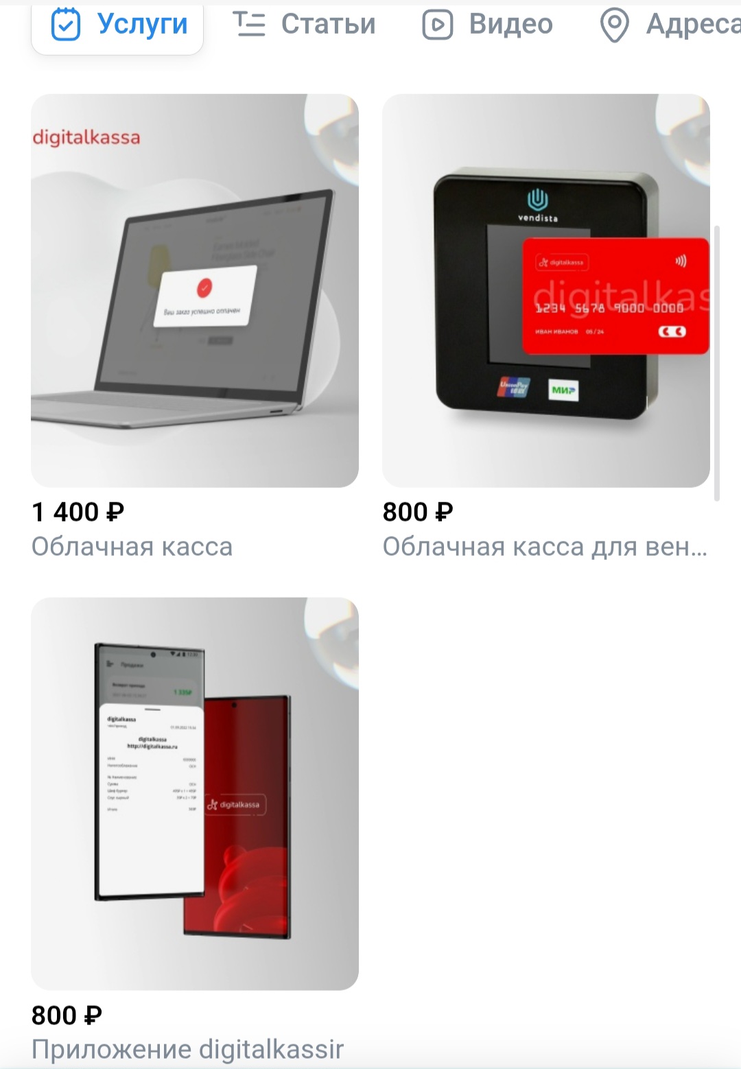 Диджитал Касса продвигается только через страницу во Вконтакте. Тут всего 76 подписчиков. Приводится краткое описание компании и ссылка на сайт.