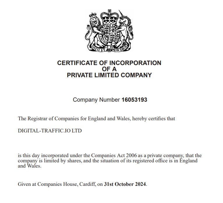 По словам владельцев, вклады клиентов застрахованы Международным фондом гарантирования. Однако, сканов страховых документов на платформе нет. Имеется лишь учредительный договор, подтверждающий, что Digital Traffic является участником акционерного общества (АО), и свидетельство о регистрации Companies House. Это говорит о том, что организация платит налоги в Великобритании.