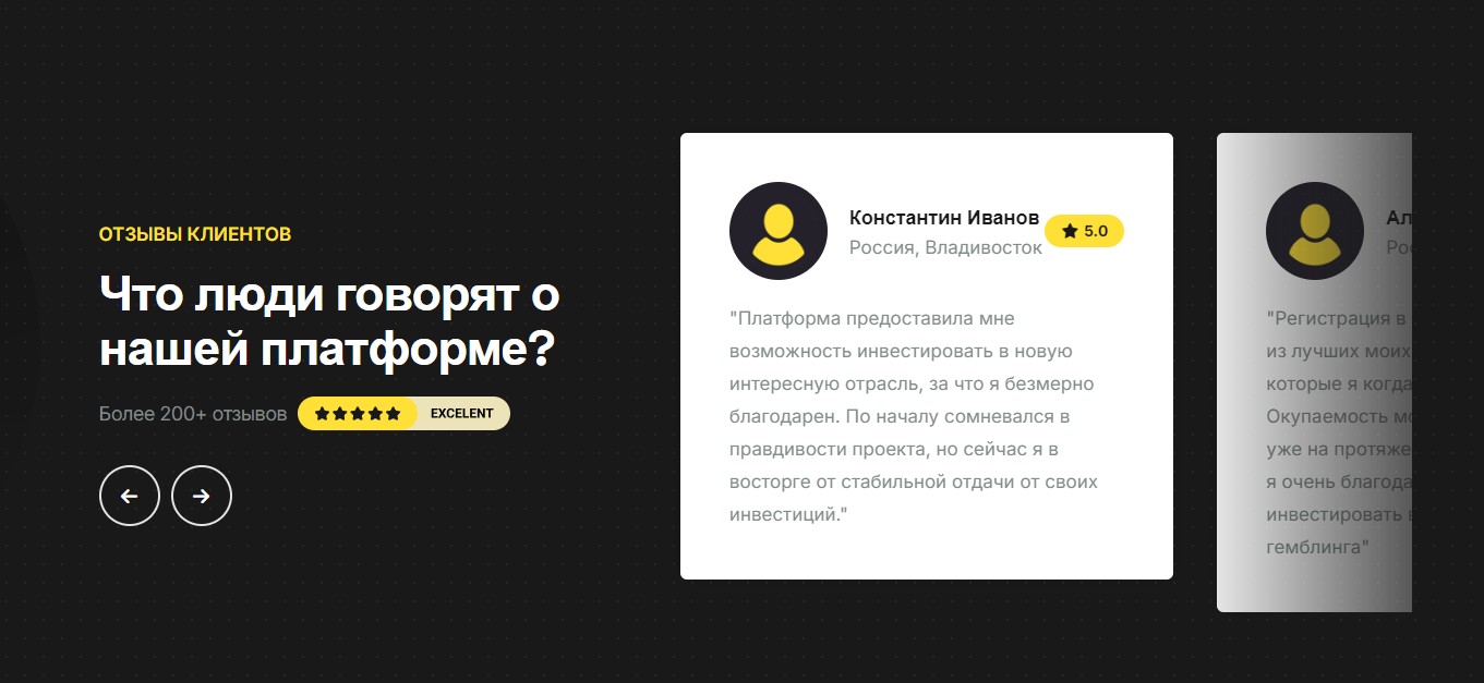 Как таковых отзывов об инвестициях в Digital Traffic нет, по крайней мере, в альтернативных источниках. На официальном сайте компании есть отдельных блок с сообщениями от пользователей. Тут у фирмы рейтинг равняется 5 звездам и присутствует надпись «более 200 отзывов».