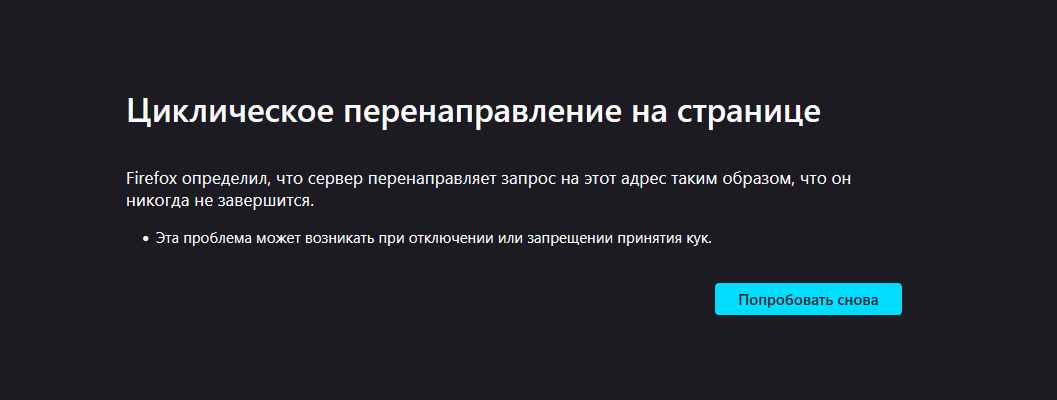 В уведомлении указано, что проблема могла возникнуть, если пользователь запретил прием cookies. Нужно либо удалить старые файлы куки, либо разрешить принимать сторонние файлы на свой компьютер.