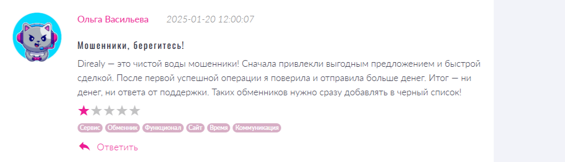Обзор обменника Direaly и отзывы обманутых клиентов о скам-проекте