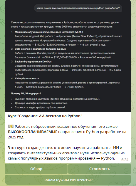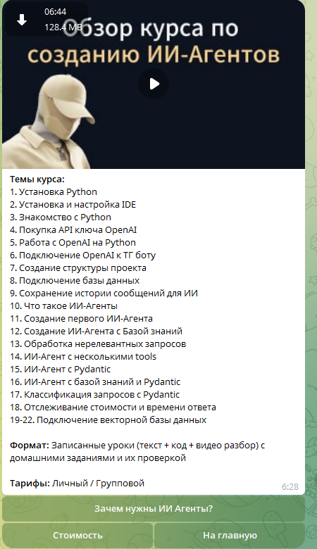 Курс по созданию ИИ агентов на Питон стоит дороже.