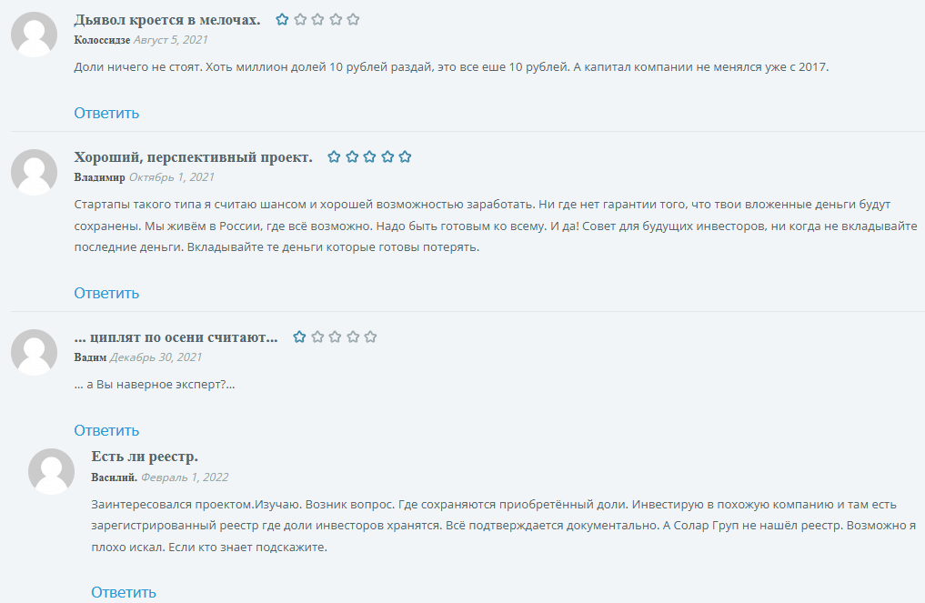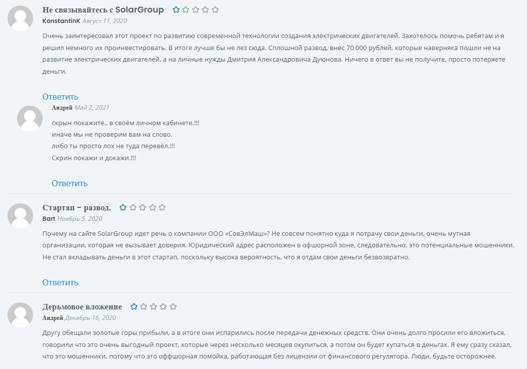 Сайт имеет второй адрес в сети sg solar. Генеральный директор компании Солар Групп — Сергей Семенов, сотрудничество с Дуюновым началось с 2021 года.