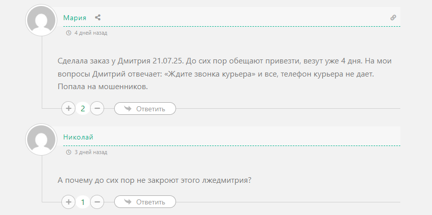 - для заказа нужна предоплата 100%, но гарантия поставки или ответственность Дмитрия нигде не закреплены;