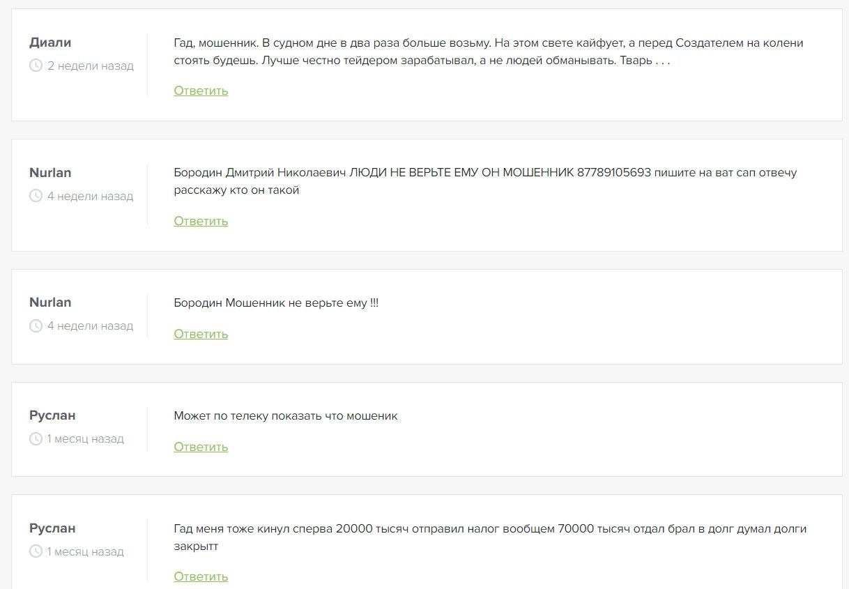 Нужно понимать, что никто из клиентов Бородина не получил и не получит обещанной выгоды. Услугу раскрутки счета (доверительного управления) придумали мошенники.