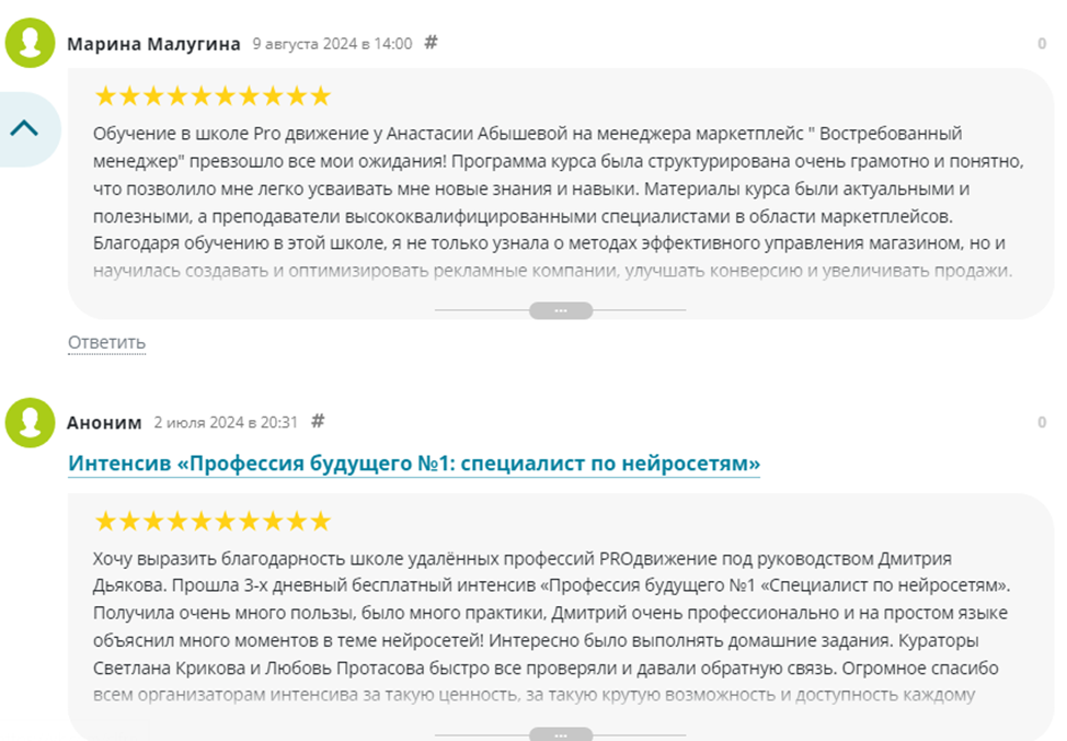 На сайтах, явно заинтересованных в продаже курсов от школы “Продвижение” комментаторы хвалят учебные программы, благодарят автора за реальную помощь. Аналогичная ситуация и на официальном сайте ProdschooL, где лента переполнена позитивом, не имеет негативных постов.