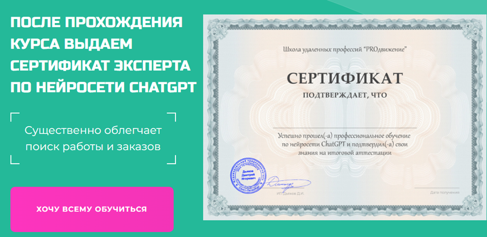 В качестве подтверждения квалификации каждому выпускнику выдается сертификат, который якобы существенно облегчает поиск работы. Причем, помимо базового, существует и расширенный сертификат, гарантирующий мгновенное трудоустройство на место с зарплатой выше рынка. На практике – эта бумага ничего не значит, никак не влияет на поток заказов.