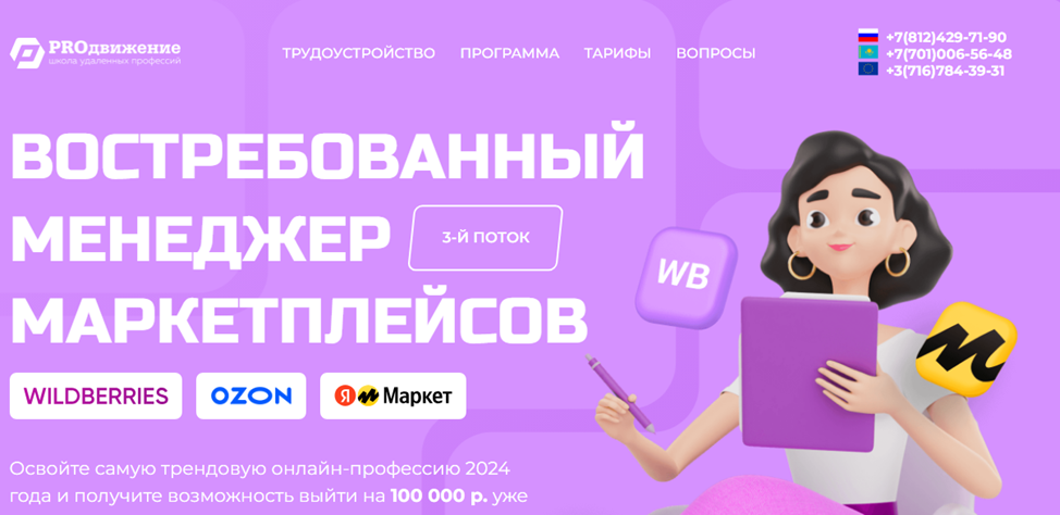 На сентябрь 2024 года в школе Prodschool велся прием на единственный поток “Нейросеть. Искусственный интеллект”. Но если использовать внешние ссылки, доступно еще несколько курсов, в том числе маркетплейсовый и ютуб-модули.
