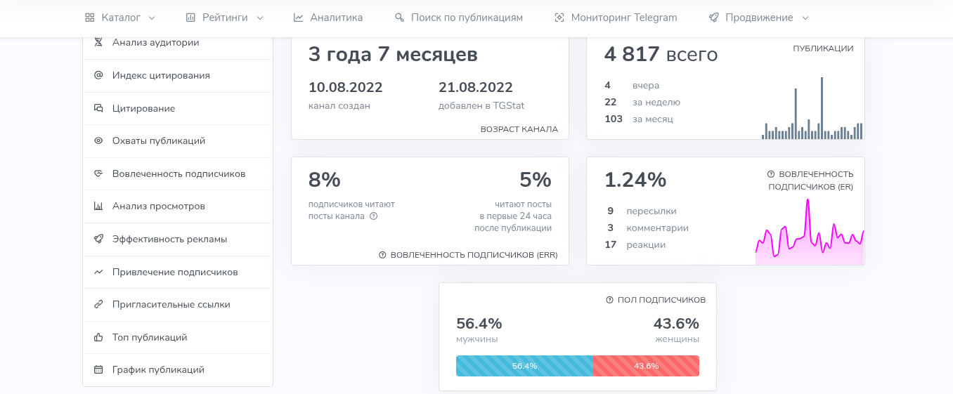 Однако, исходя из того, что даже при приросте человек у ТГ-канала «Академия ГАБ» в более 3750 за месяц, активность крайне низкая. Всего 8% из более 41 000 читают посты, а вовлеченность еще ниже — 1.24%. Это говорит про искусственную накрутку аудитории.