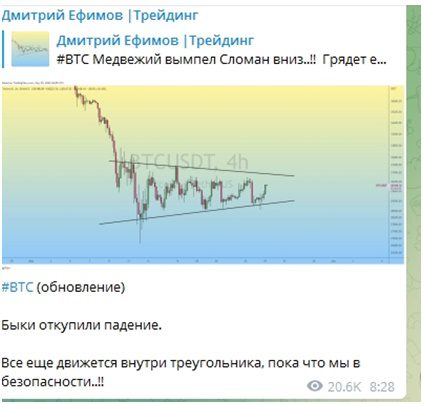 Дмитрий Ефимов – трейдер, которому принадлежит одноименный Телеграм канал. Сам он заявляет о себе, как о якобы опытном криптоаналитике с 20-летним стажем в сфере торговли. Давайте разберемся, что он предлагает своим пользователям.