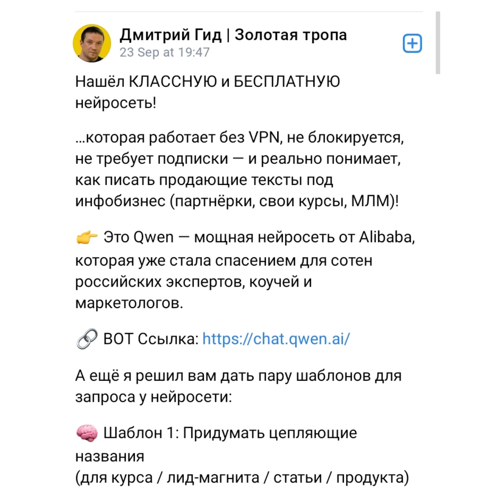 Документов, доказывающих квалификацию и возможность проводить обучение, не размещает. Дмитрий Гид, основатель проекта Золотая Тропа, позиционирует себя экспертом по запуску бизнеса. Тем не менее подробные сведения о своей работе в такой сфере скрывает.