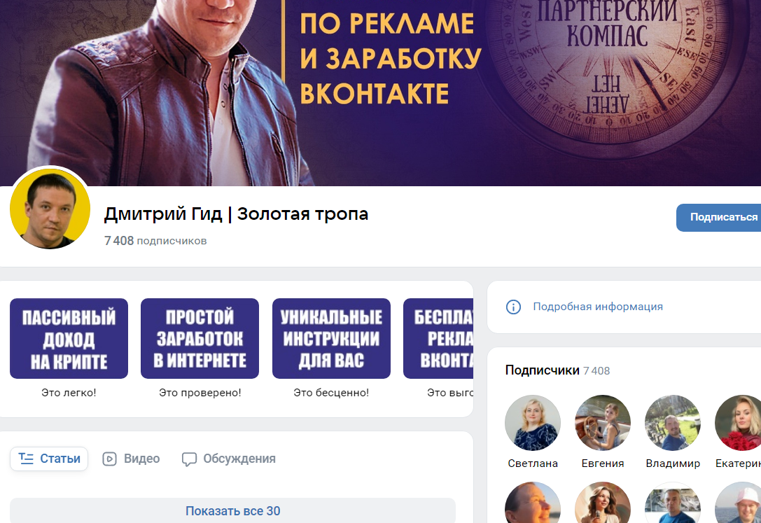 Из этого следует, что автор блога получает доход на рекламе. Контент в группе не обновляется регулярно. Для коммуникации с подписчиками оставлена страница админа Dmitriy Gid. Создатель проекта Дм Гида не оставил ссылок на другие социальные сети.