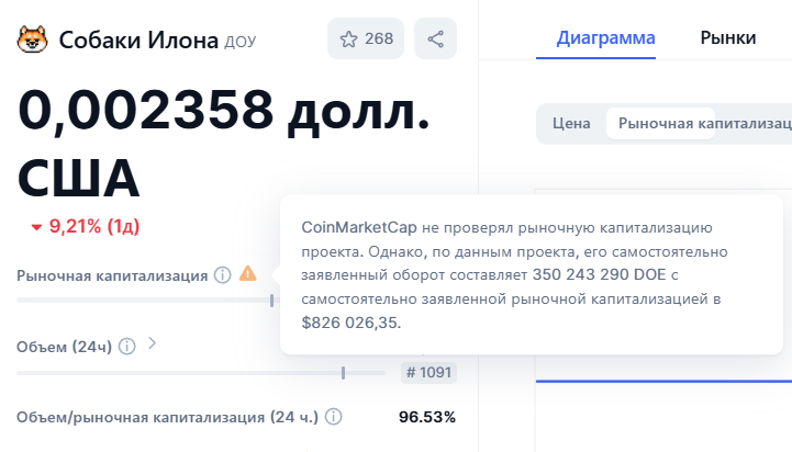 А с учетом того, что сумма не верифицирована, держателей токенов может ждать неприятный сюрприз при попытке их продать.