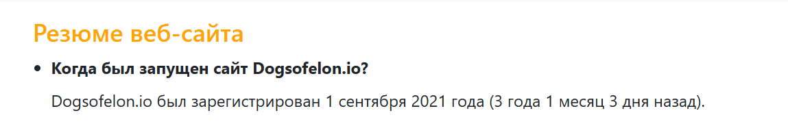 Также подтверждена и дата регистрации проекта – она совпадает с датой создания домена и не содержит в себе никаких признаков попытки ухода от ответственности за пользователей сайта проекта.