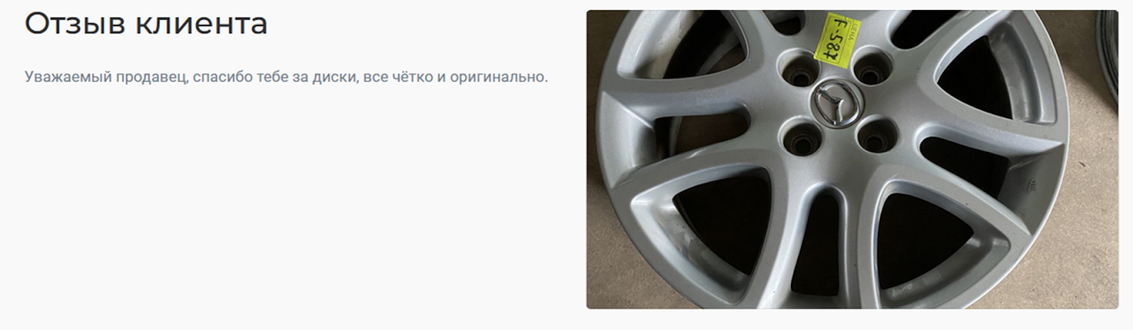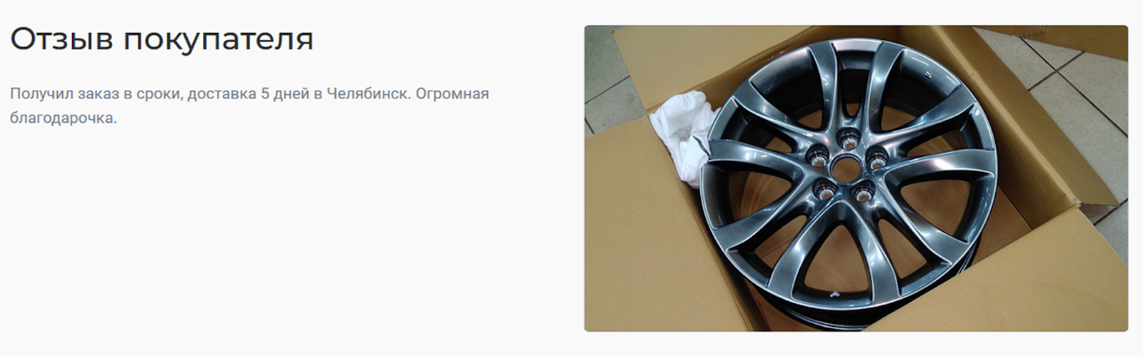 Основной ассортимент – автодиски разных типов, преимущественно литые. Компания заявляет, что предлагает только оригинальный товар и готова помочь в подборе дисков нужного типоразмера. Все диски новые, оценку можно провести по фото или во время получения. Возврат средств гарантируется только при критических дефектах. Доставка осуществляется при 100% предоплате, наложенного платежа нет.