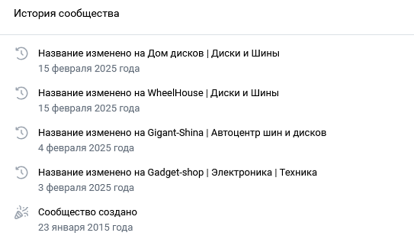 - группа Вконтакте GigantShina начала активно работать только в 2025 году, несколько раз изменив название.