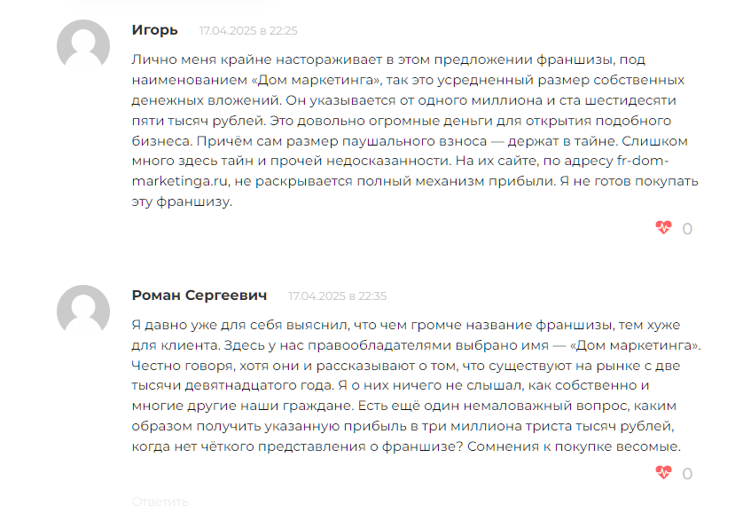 Какие про сотрудничество с компанией «Дом маркетинга» отзывы реальных покупателей франшизы