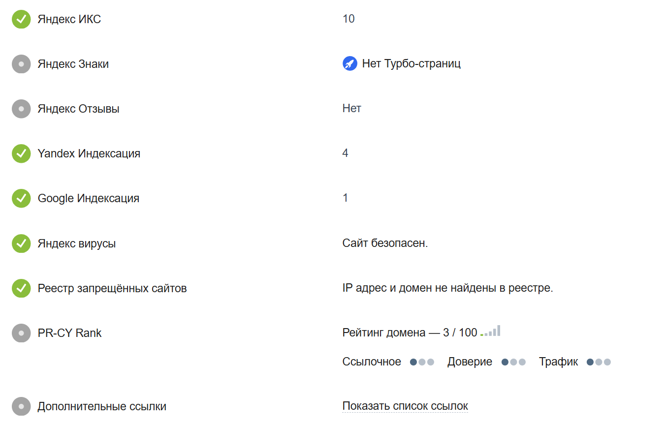 Возраст домена — три года. При этом за данный период сайт так и не смог раскрутиться. На момент написания обзора он имеет крайне низкий рейтинг. Страницы ресурса только начинают индексироваться в поисковых системах.