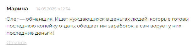 Клиента по имени Марина в своем комментарии назвала Олега мошенником, который ворует у людей последние деньги.