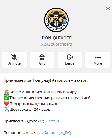 Обзор и отзывы про магазин в Телеграмм Don Quixote: какую продукцию продают и не обманывают ли пользователей
