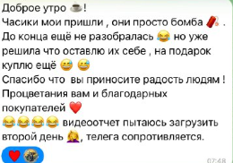 Второй автор отзыва сравнивает с «бомбой» часы, которые здесь купил, и желает владельцам сообщества процветания. В комментариях фигурируют сложные фразы и одинаковые слова. Скорее всего, их писал на заказ один и тот же человек, нанятый на бирже микрозаданий.